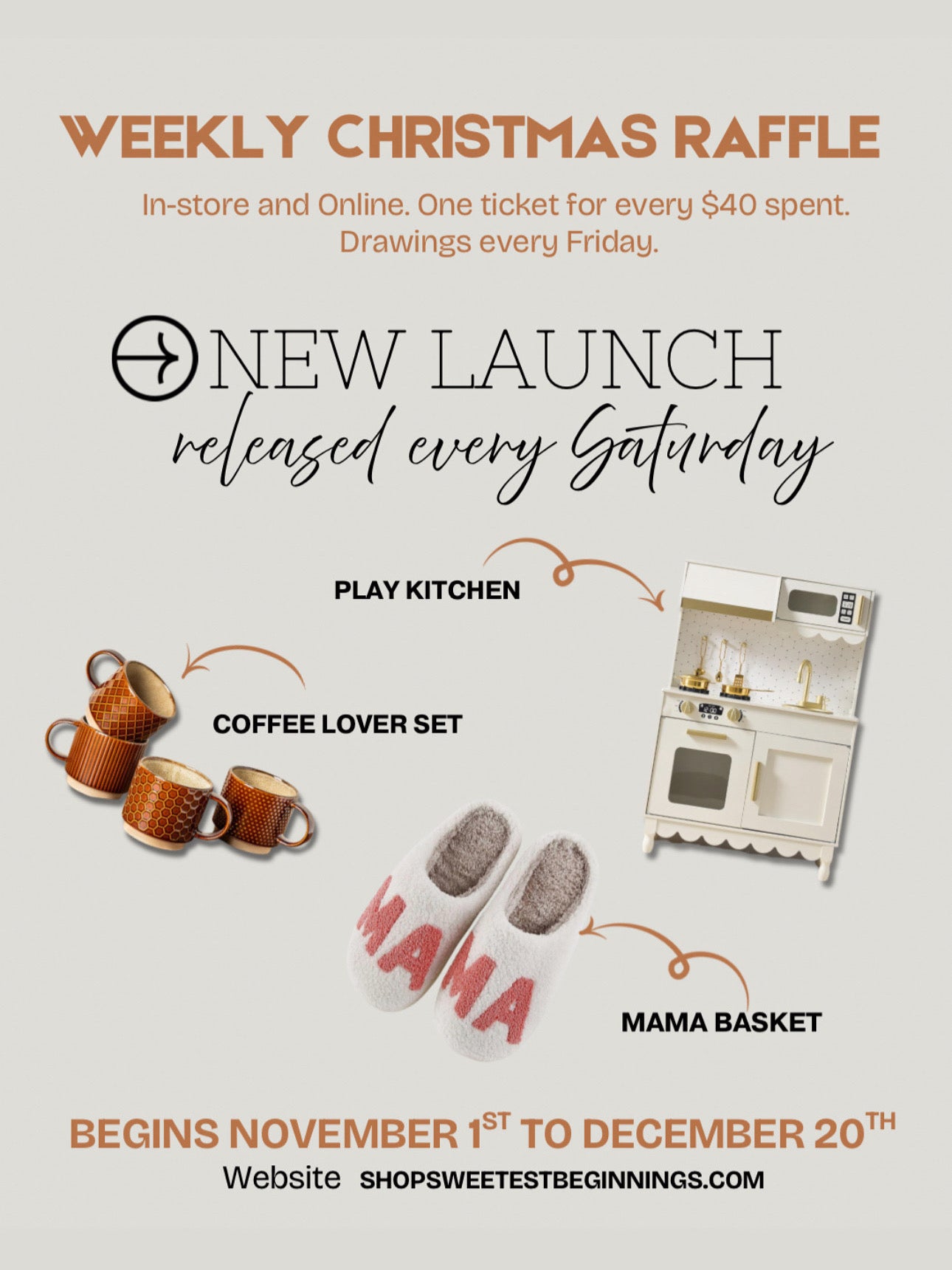 40% off the entire website! (Excludes clearance) PLUS our weekly raffle begins this Saturday, November 1st!