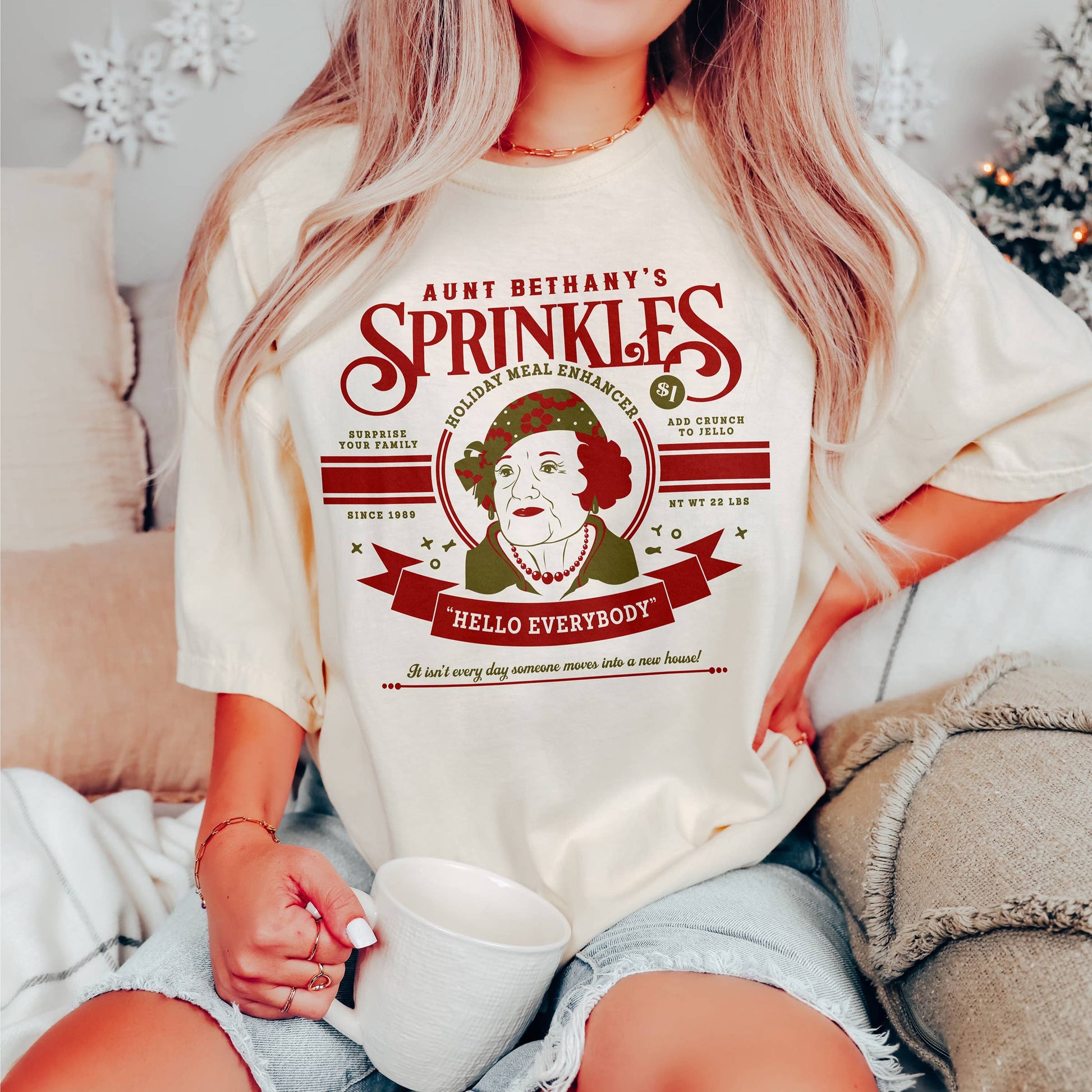 Aunt Bethany's Christmas Sprinkles Tee: Ivory