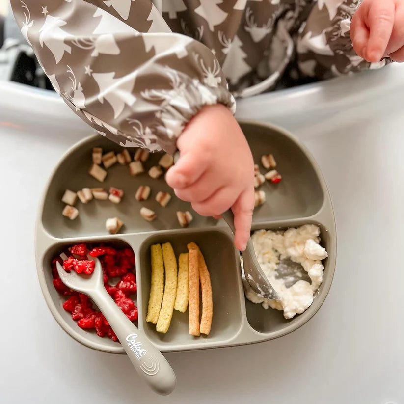 Calla & Friends 4-section suction plate keeps meals in place with powerful suction that sticks to high chairs and tables. Made from soft, food-grade silicone that's safe and gentle on little hands. BPA-free and non-toxic for worry-free feeding. Dishwasher, microwave, and freezer safe for easy cleanup and convenient storage.