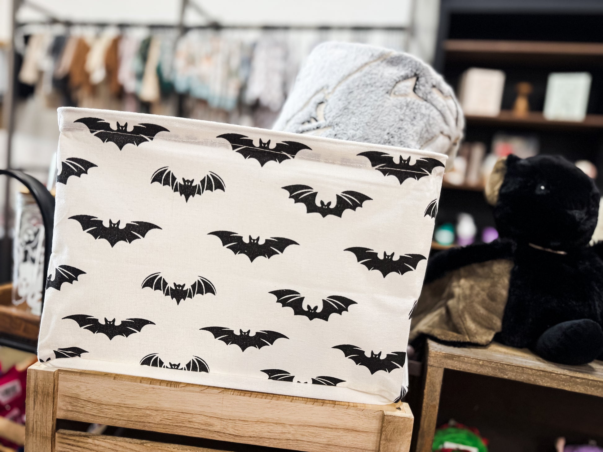 The Collapsible Basket - Bats is a functional and stylish addition to your home. With collapsible handles and a convenient size of 12.2"L x 9"H, it is perfect for storage and organization. The intricate bat design adds a touch of personality to any space. Effortlessly combine form and function with this versatile basket.