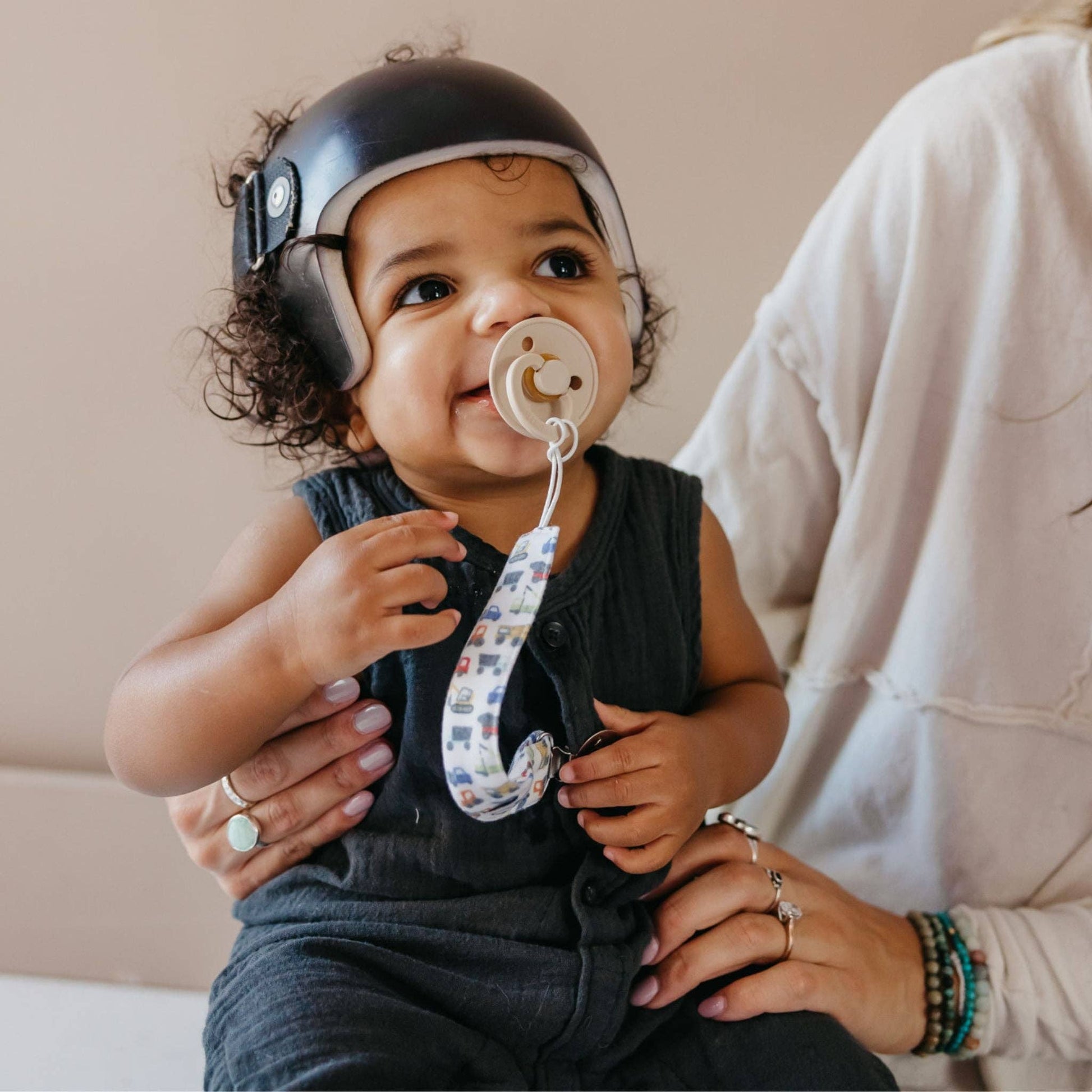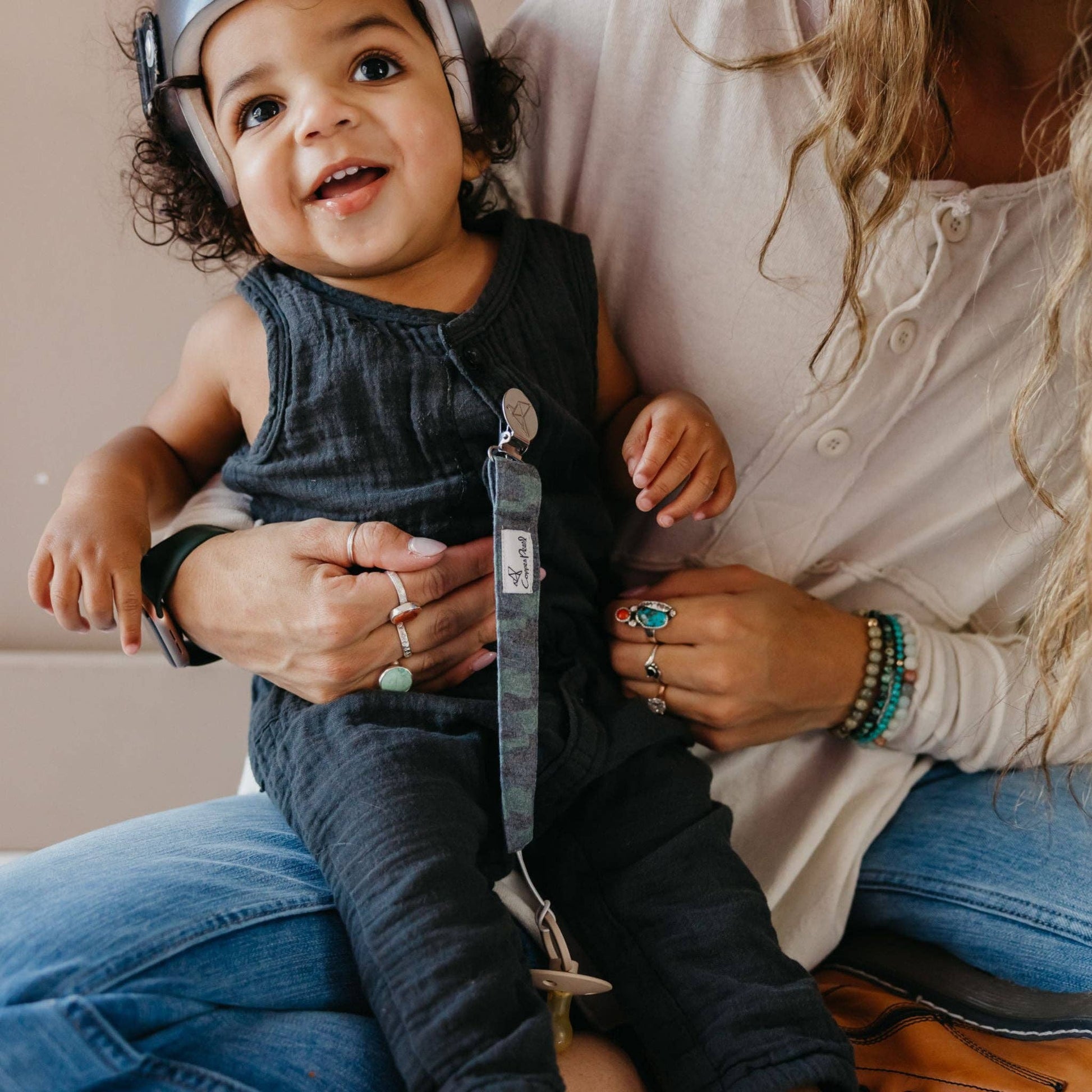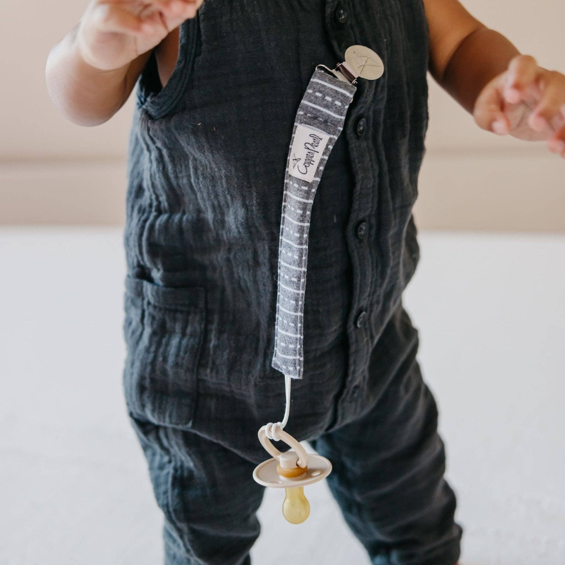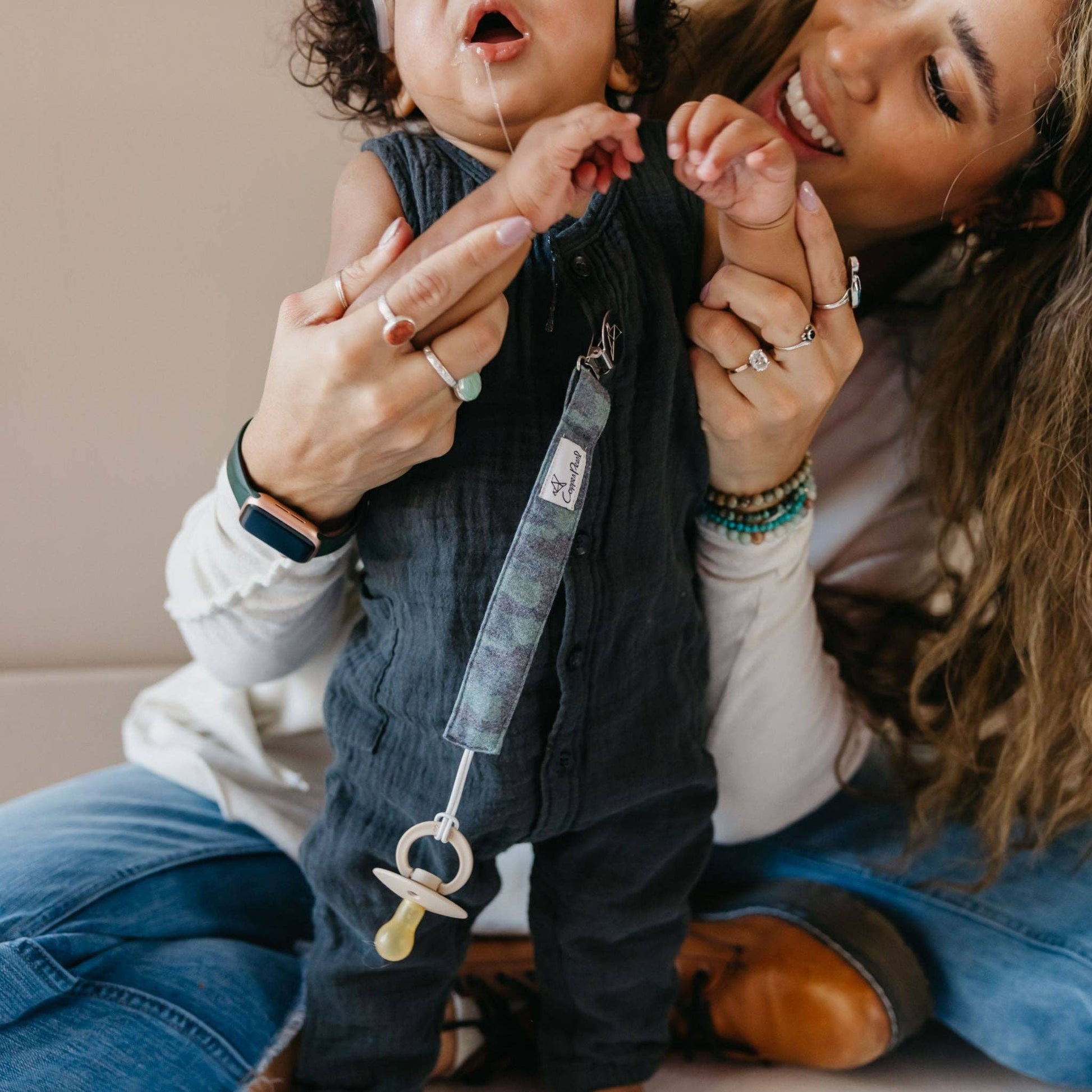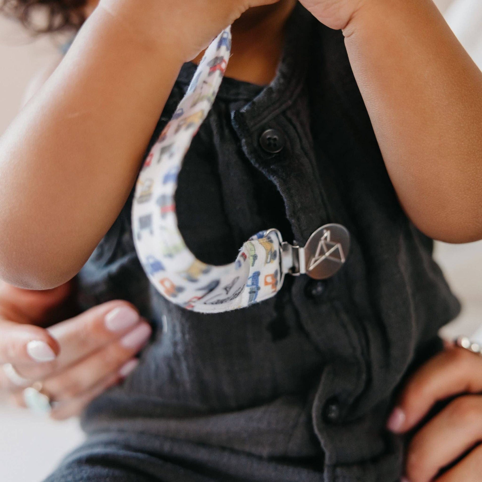 Keep your baby's pacifier within reach with our Diesel Binky Clips—the stylish solution every parent needs. Each set includes three clips featuring a soft, premium knit strap lined with absorbent fleece to catch drool and moisture. The durable stainless steel clip securely attaches to pacifiers, teethers, clothing, or blankets, eliminating those frustrating moments when pacifiers hit the floor.