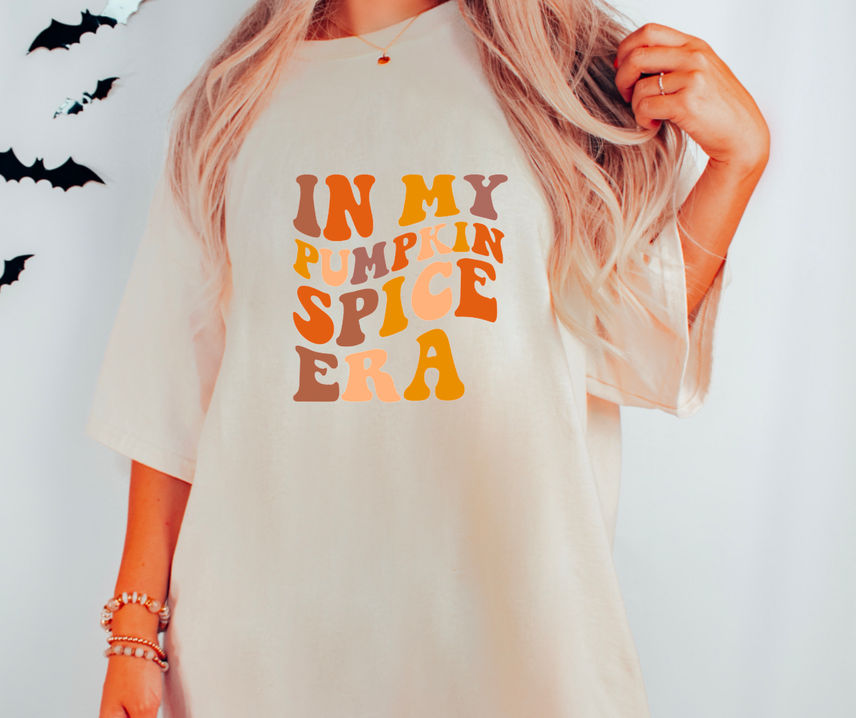 This "In My Pumpkin Spice Era" tee by Comfort Colors is an ideal choice for the cozy fall months.