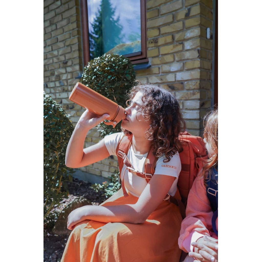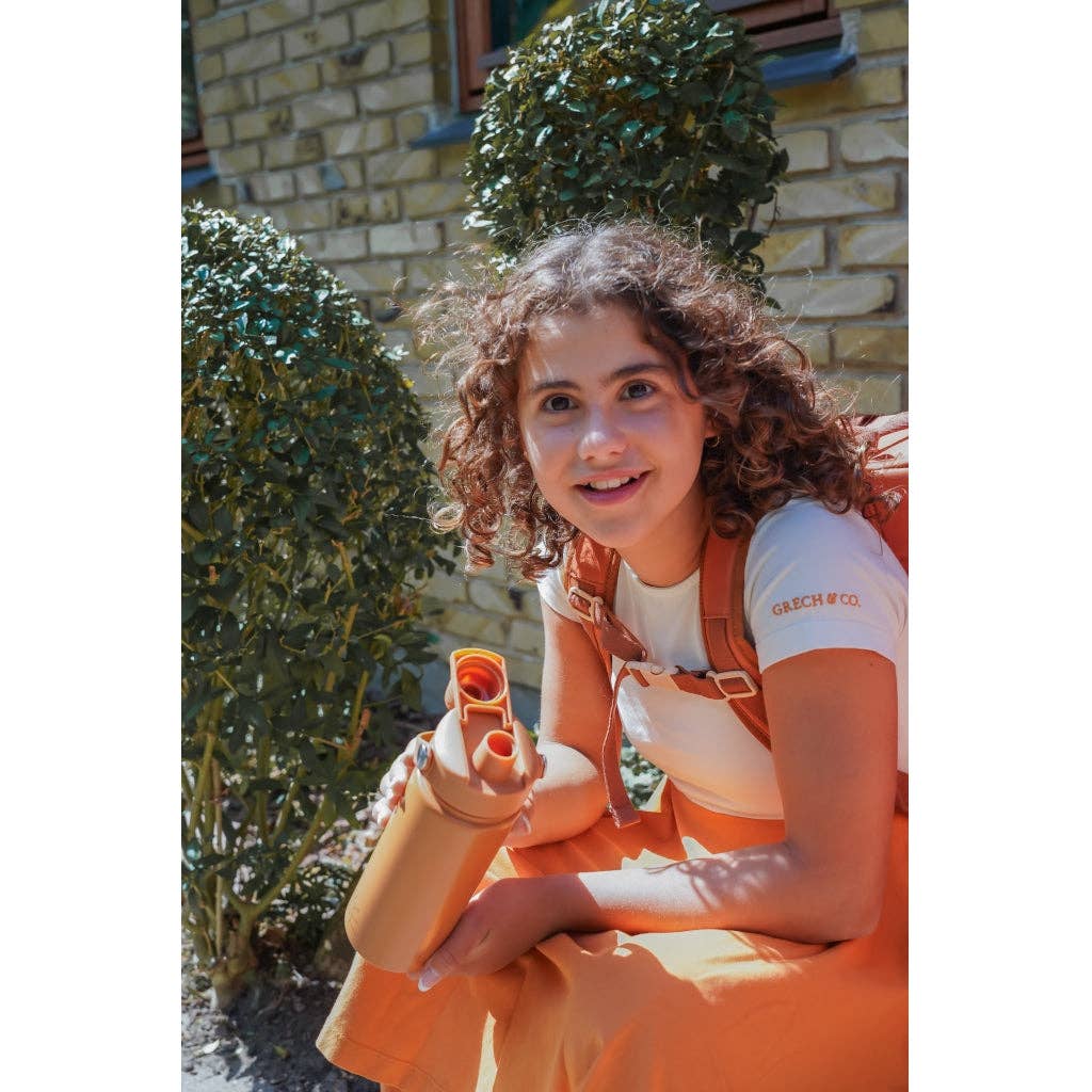 The GRECH & CO. Twist & Go Thermo Water Bottle makes on the go hydration convenient and fun. An attached twist open cap ensures a leak free closure and keeps parts from going missing. With a double vacuum stainless steel wall, drinks hold their temperatures longer.