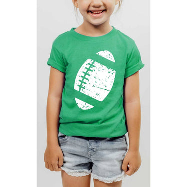 Distressed Football Graphic Tee. Tees are pre-washed to minimize shrinkage.