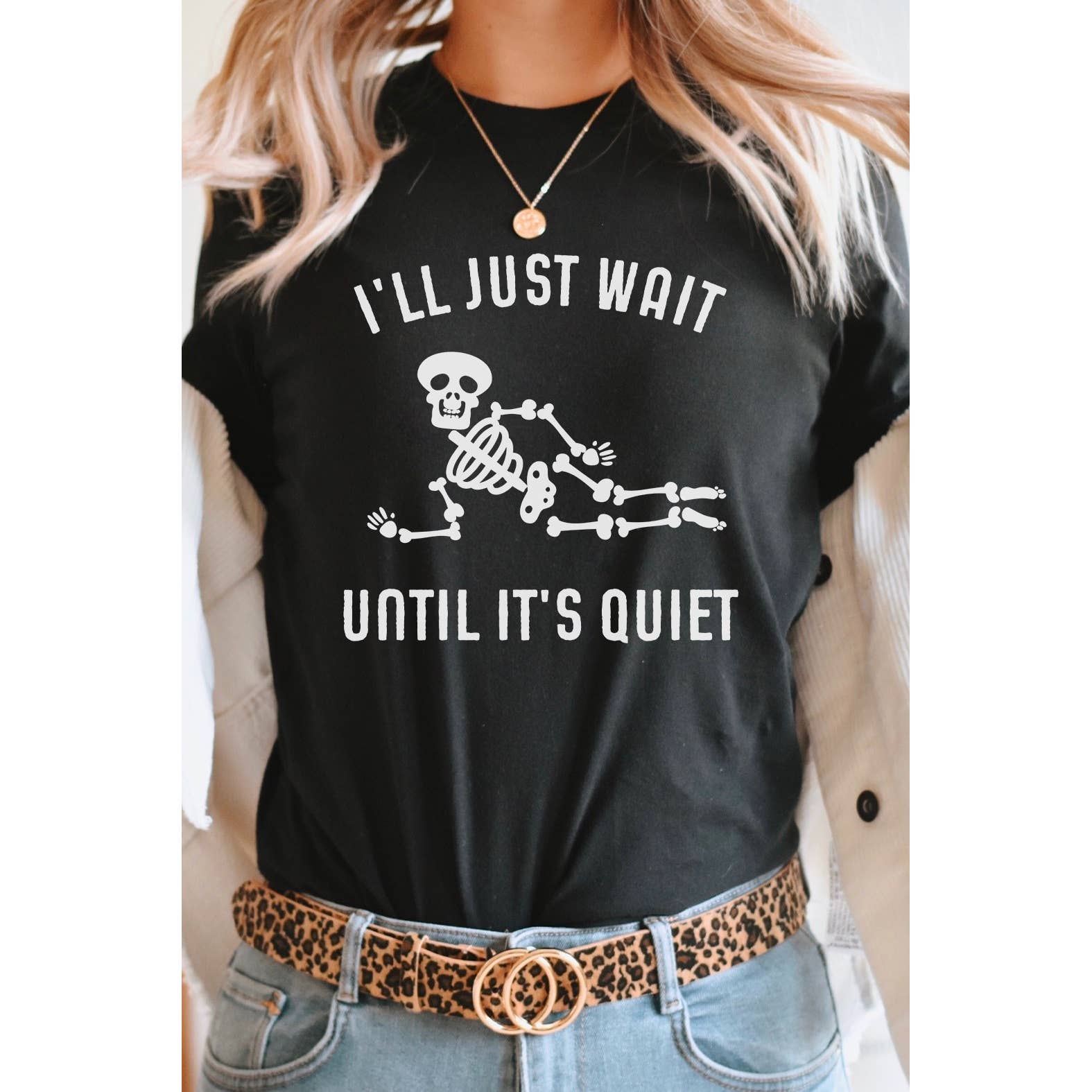 This clever and fun tee features a skeleton teacher eagerly waiting for some quiet in the classroom. Perfect for teachers with a sense of humor, this graphic tee adds a playful touch to the Halloween festivities.