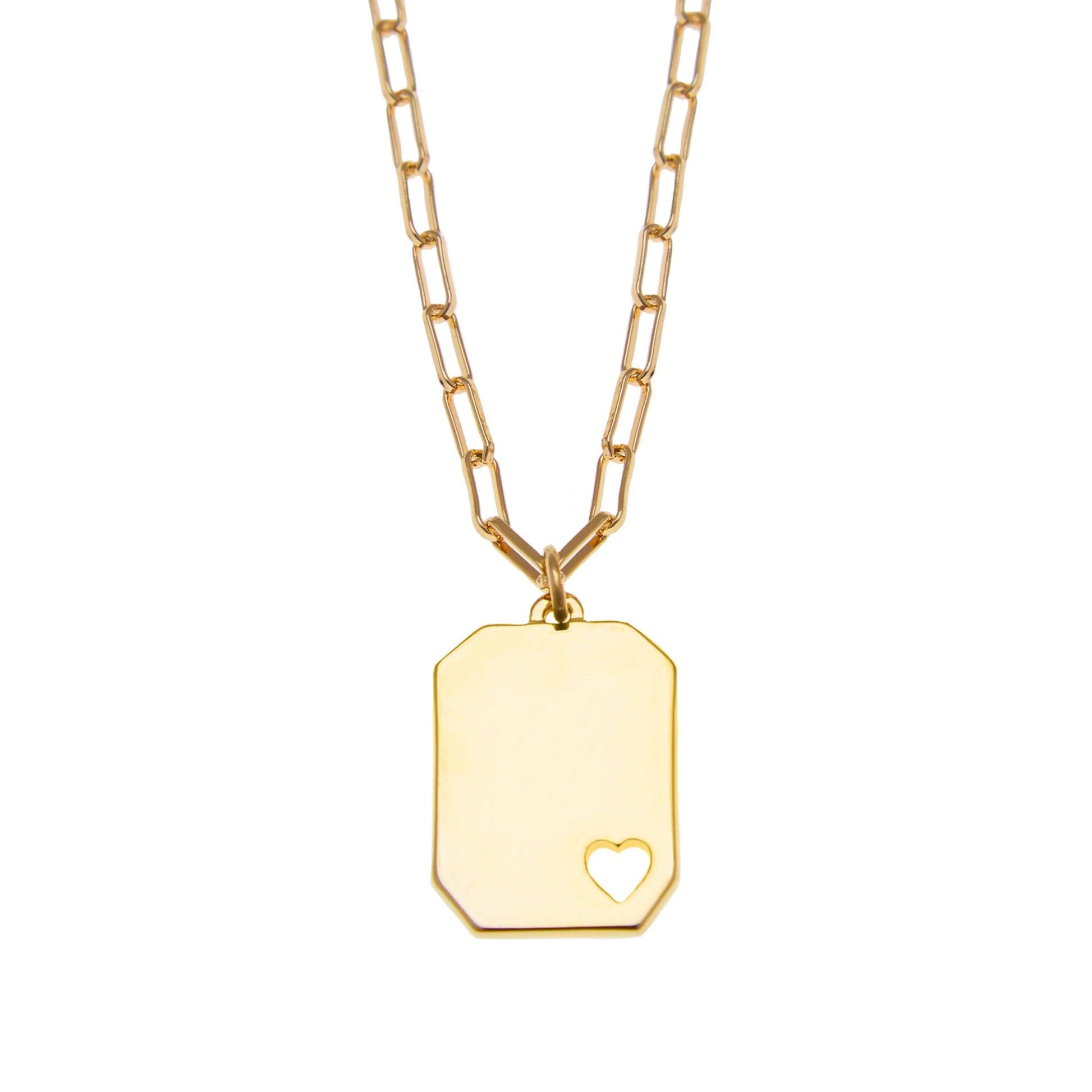 This gold necklace features an elegant heart cutout pendant. The openwork design creates a modern, sophisticated look while maintaining timeless appeal. Crafted in quality gold, the pendant hangs gracefully from a matching chain, making it versatile enough for everyday wear or special occasions. Perfect as a meaningful gift or personal treasure that celebrates love and connection.