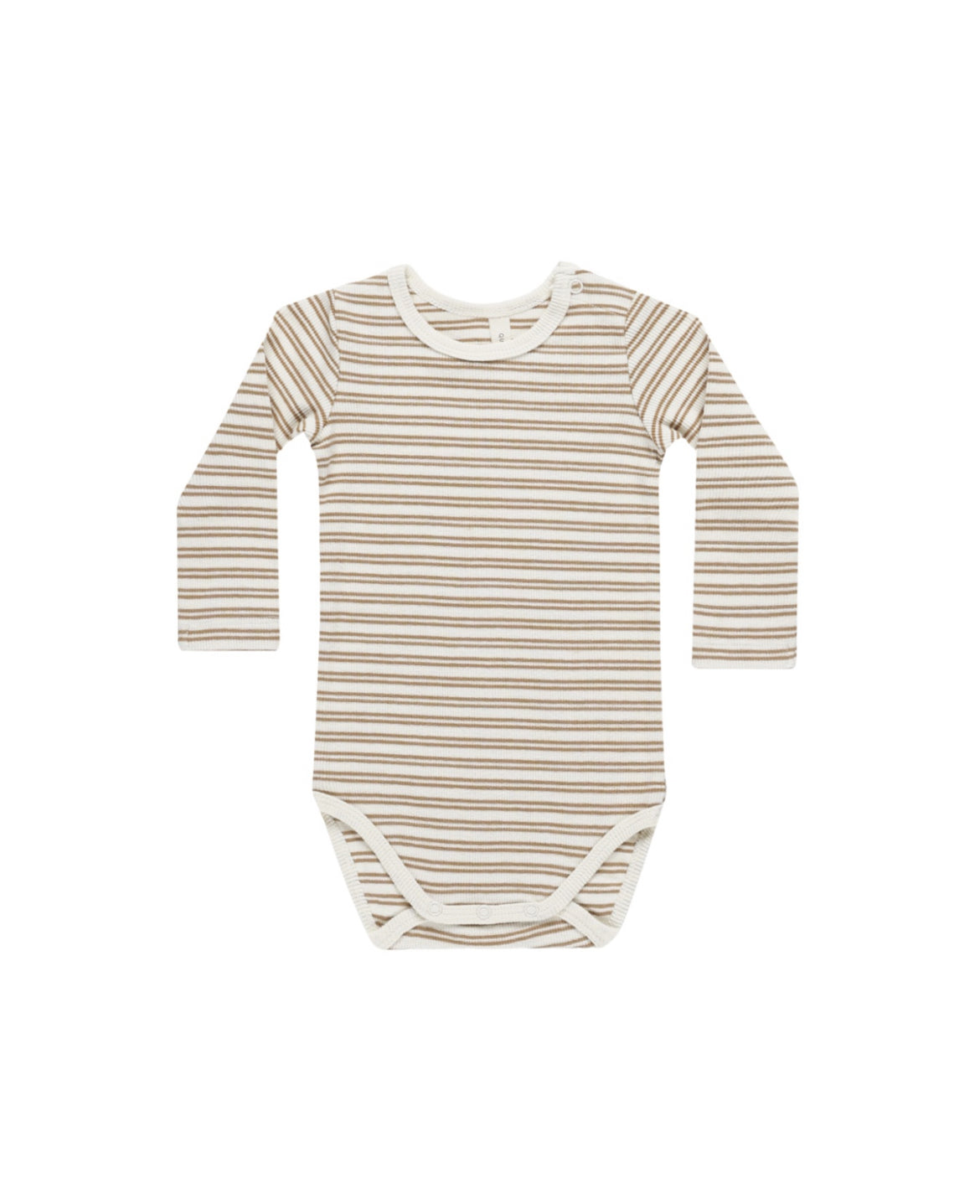 This long-sleeved onesie features a golden stripe ribbed design and is crafted from 95% organic cotton and 5% elastane for a comfortable, flexible fit.
