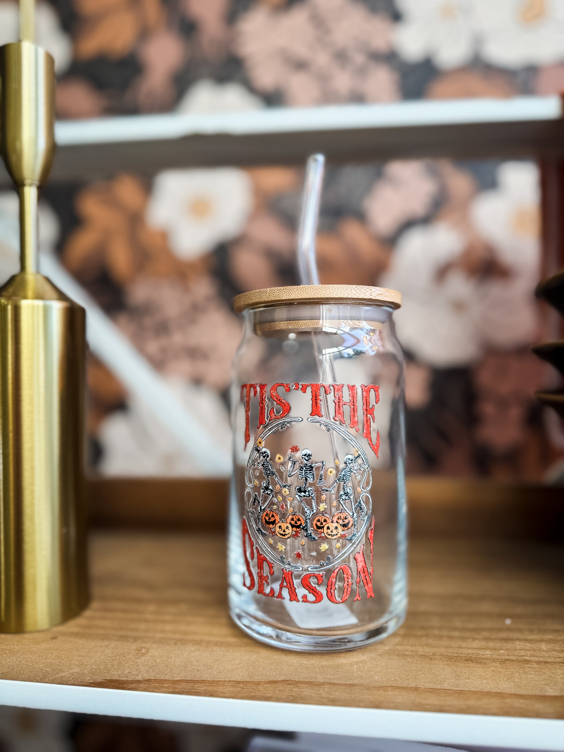 Sip on your favorite drink from this clear glass cup with a reusable straw and have a day dancing away full of spooks and pumpkins.